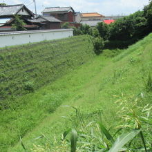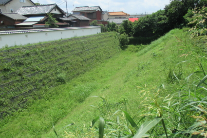中の門堀跡は、蔵造りの街並み一番街の札ノ辻交差点から東へ300m少々です。ここには長さ50mくらの堀が残されています。川越城の遺構の中で、富士見櫓跡に比べるとこの遺構は形がはっきりと残っています。今の市役所のある西大手門を突破した敵を食い止める空堀です。勢いよく駆け降りるとその先の壁は急勾配で登れない、四角い狭間から銃で狙い打ち、となる訳です。この遺跡では、崩れない様に土留めがされていて登りやすそうですが・・・。また、この遺跡には再現されていませんが、説明書きによると、中ノ門そのものもコの字型のところに設置されていて、直進が出来ない様にもなっていたそうです。城外になりますが、南大手門の先の武家屋敷街だった三久保町(今は唯一永島家住宅が残っています)には七曲りと呼ばれる変則的な路地が残っています。江戸城が万が一の時の将軍避難城ですから、守備の仕組みもいろいろあります。