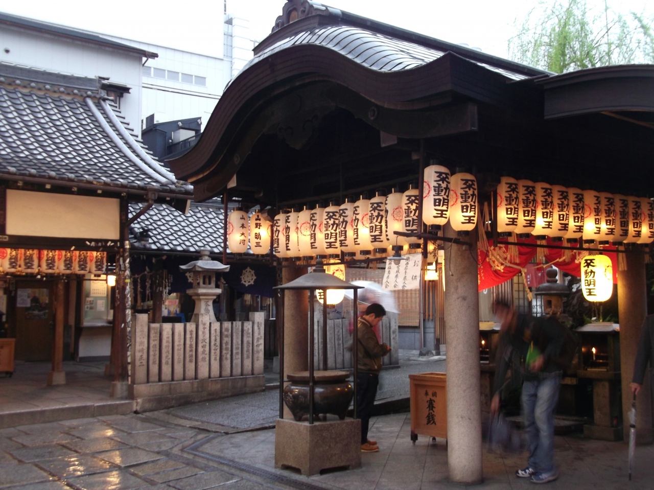 法善寺横丁の一角で静かにたたずむ水掛不動さま。長い年月絶え間なく水をかけられてお参りされるので、全身が緑のコケでおおわれているのが印象的です。こちらは商売繁盛と恋愛成就の御利益があると聞きました。他の人の様子を見よう見まねで、健康を祈って水をかけてお参りをしました。
