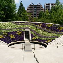 JR両国駅から徒歩10分程、横網町公園内にあります。関東大震災や東京大空襲などの犠牲者の冥福を祈る東京都慰霊堂のすぐ脇にあります。半円形のすり鉢状の祈念碑は、たくさんの綺麗な花が咲く花壇になっていました。祈念碑の中には、東京大空襲などで亡くなった犠牲者の方々の名簿が納められているとのことです。今更ですが、二度と繰り返してはならない戦争と平和の重要性を改めて感じさせられる場所でした。