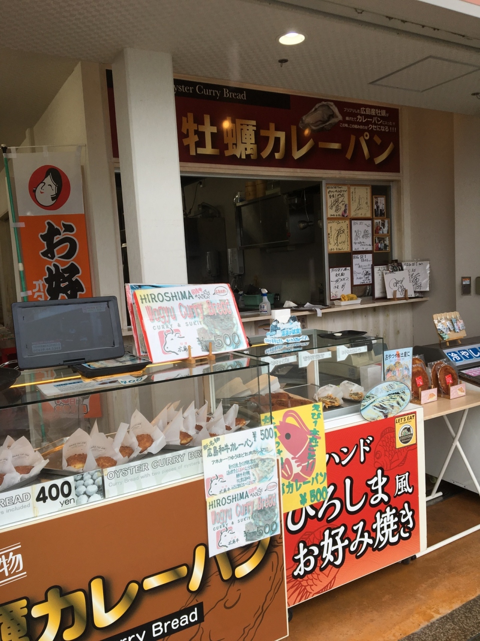 揚げたてのカレーパンなのですが、宮島らしく、牡蠣入り!しかも~丸ごと2個も入ってるんですよ。太っ腹~!この辺は牡蠣漁業が盛んらしいので、安く入手できるのだと思いますが、それにしても贅沢な逸品です。