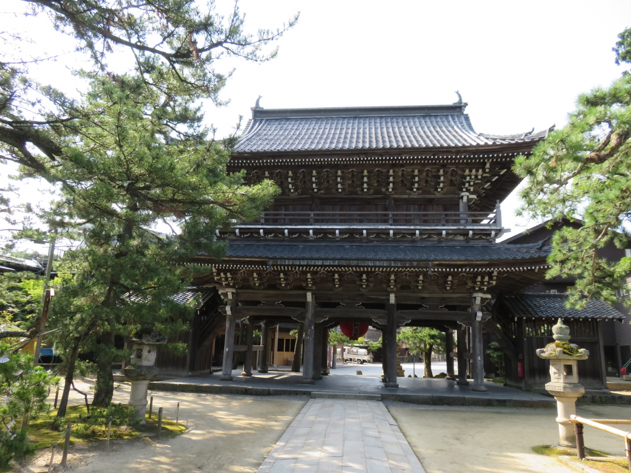 天橋立観光船乗り場に隣接する立派な寺。文殊の知恵で知られる文殊菩薩を祀る寺だ。朝一番の船が8時半に出発するのだが、ツアーバスは15分以上前に到着したので、このあたりで船を待つ間に、さっと境内を歩いた。