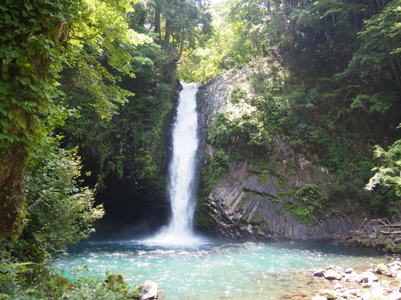 滝までは駐車場から急な階段を下りる必要がありますが、滝つぼのすぐ近くまで行くことができます。