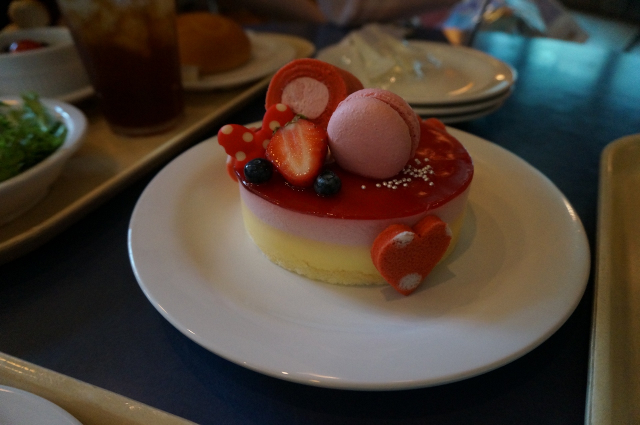 ネットで予約をとろうとしたのですが、日曜日のランチのため満席でした。当日の9時からアクセスしてみましたがこれまた満席。結局レストランの前で9時20分ごろから並んで予約が取れました。ミッキーたちに会えてよかったです。デザートをホールケーキに変更しました。