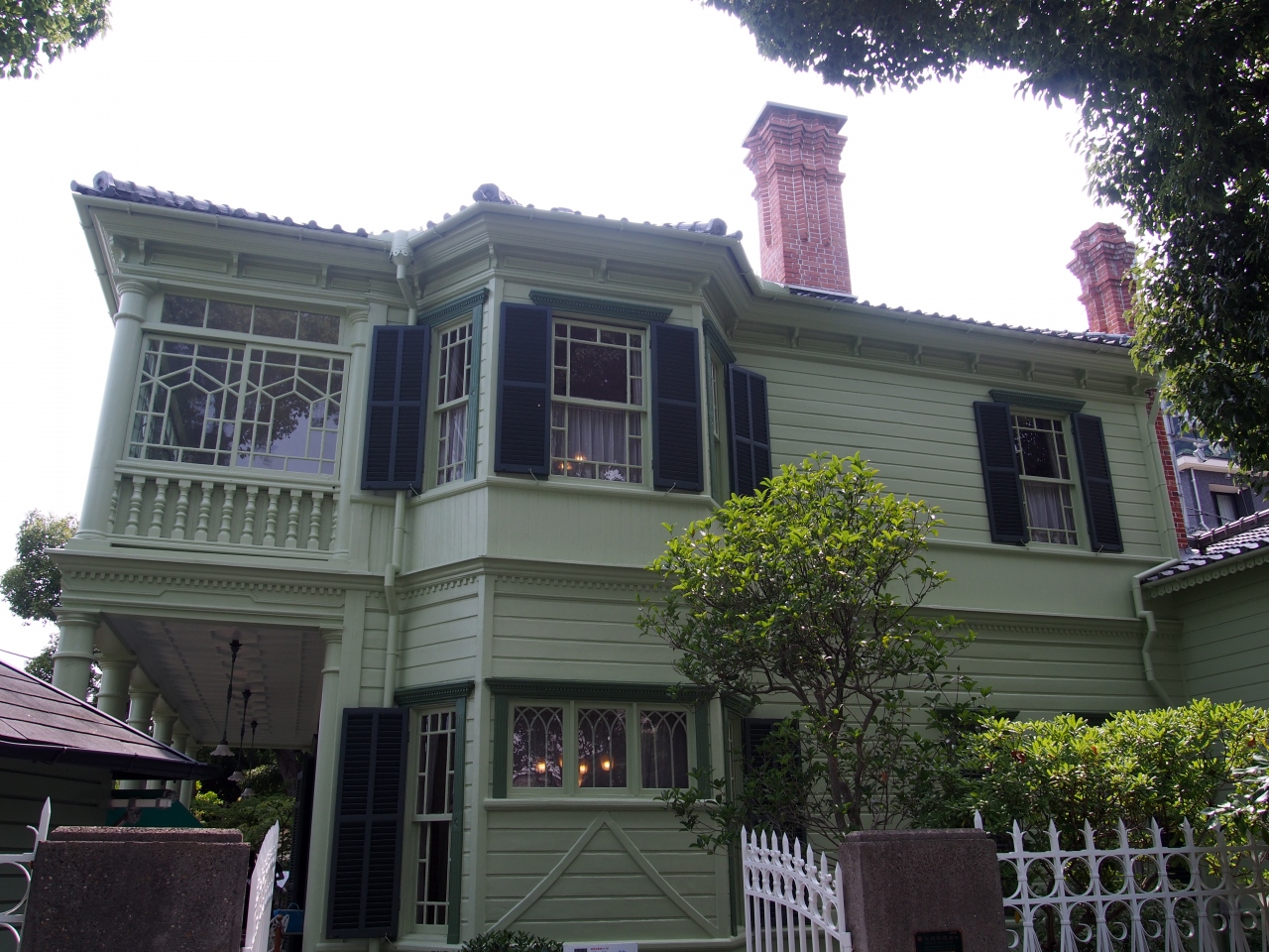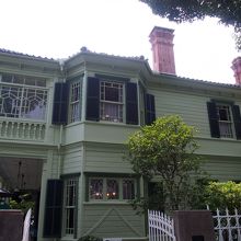 風見鶏の館からほど近い洋館。館内はそれほど広くありませんが、大勢の観光客でにぎわっていました。見どころはやはり萌黄色の2階建ての建築。周辺木々の濃い緑とマッチしてとても美しく感じました。