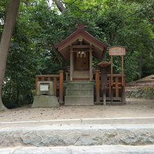 出雲大社、二の鳥居(大鳥居)をくぐり坂の参道を少し進むと右側に小さなお社が見えてきます。