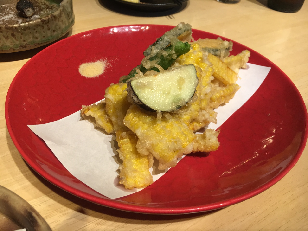 なんでも美味しいですが、とうもろこしの天ぷらとスミノフはオススメ!