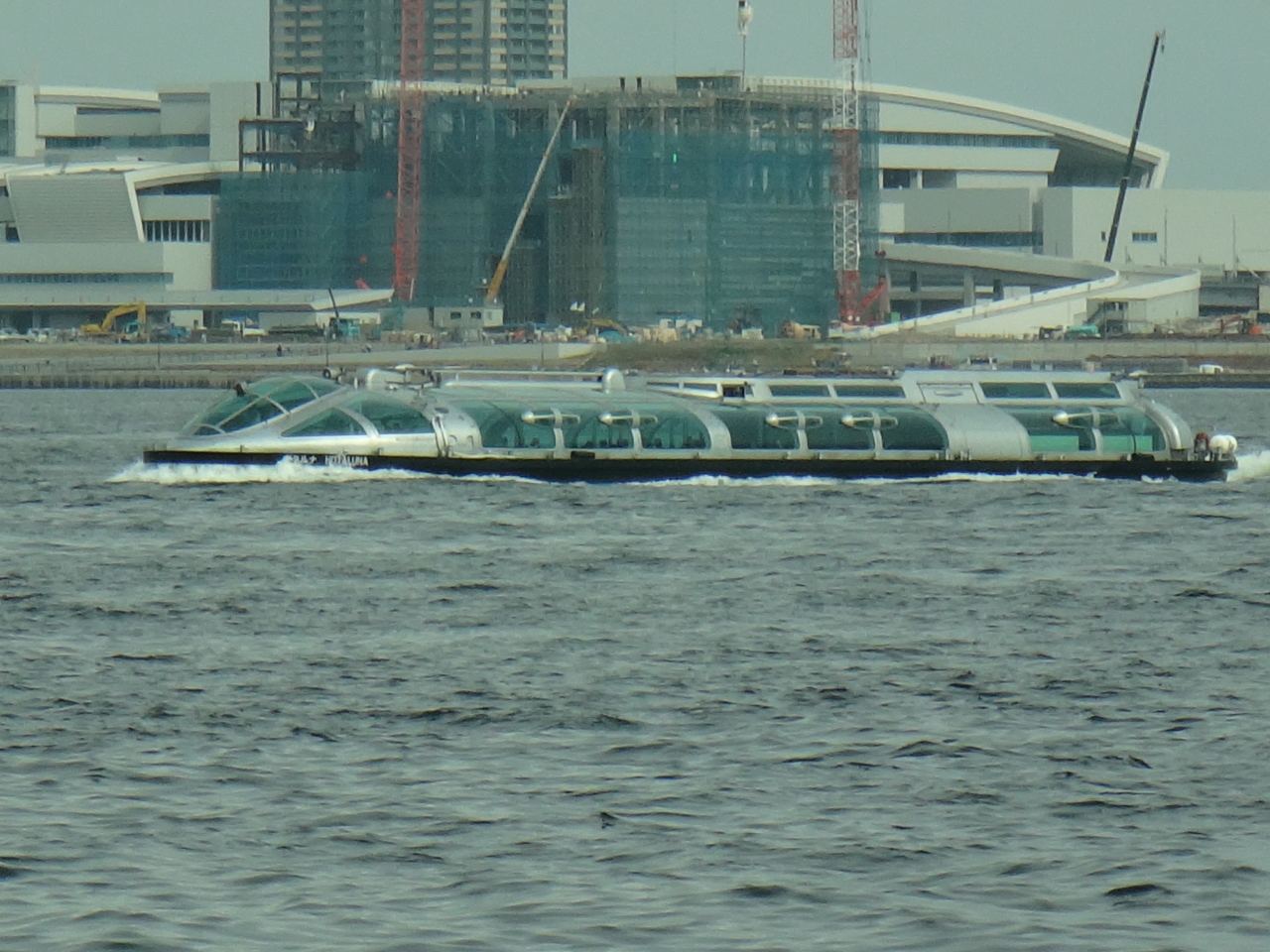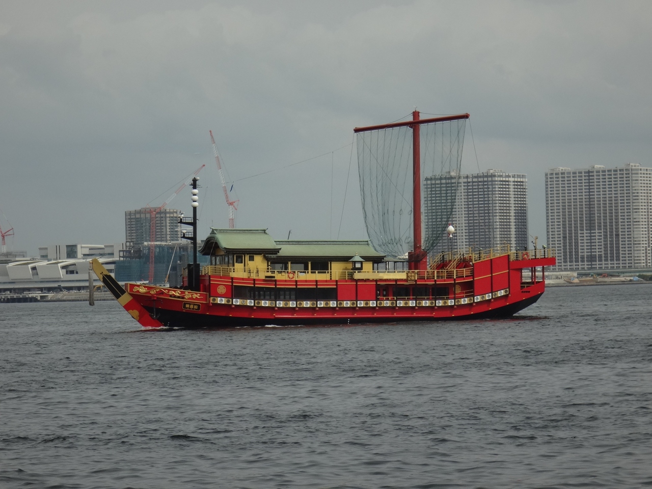 レインボーブリッジの下を通る船には色々ありますが、観光船なども見ることができます