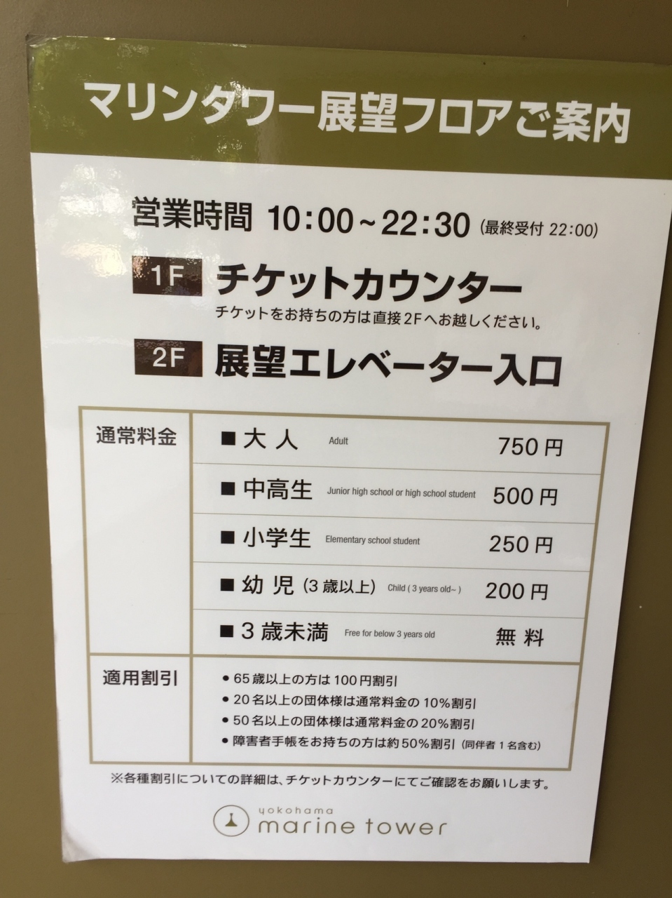 横浜マリンタワー 前は通ってるけど入ったことが無かったので 今回初横浜マリンタワー。レストランが数店舗入っており いづれもオシャレな感じです。料金は750円です。4階のレストランまでは無料でエレベーターで行けました。景色が綺麗で上って良かったです。