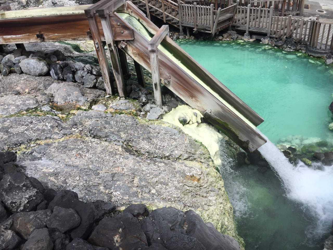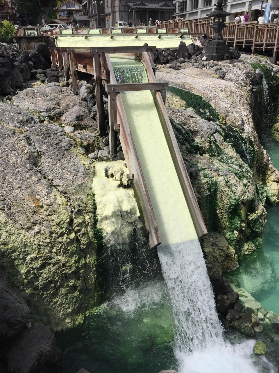 テレビ旅番組でよく見る草津温泉の湯畑です。見る価値は非常に高いですが、別にあっと驚くものは全くありません。お子様は退屈だろうと思います。硫黄の香りも他の温泉郷ほど強くはありません。草津温泉に行ってきました~感を味わうためだけの施設です。