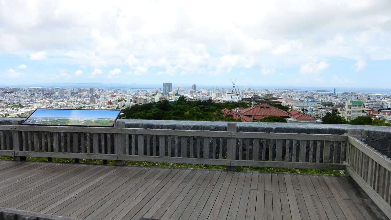 首里城公園に行く人は、「守礼の門」、「正殿」に行く人は多いのですが、帰り道の分かれ道の左側先にある、「西のアザナ(展望台)」に行く人は多くないですし、その為いつも空いています。