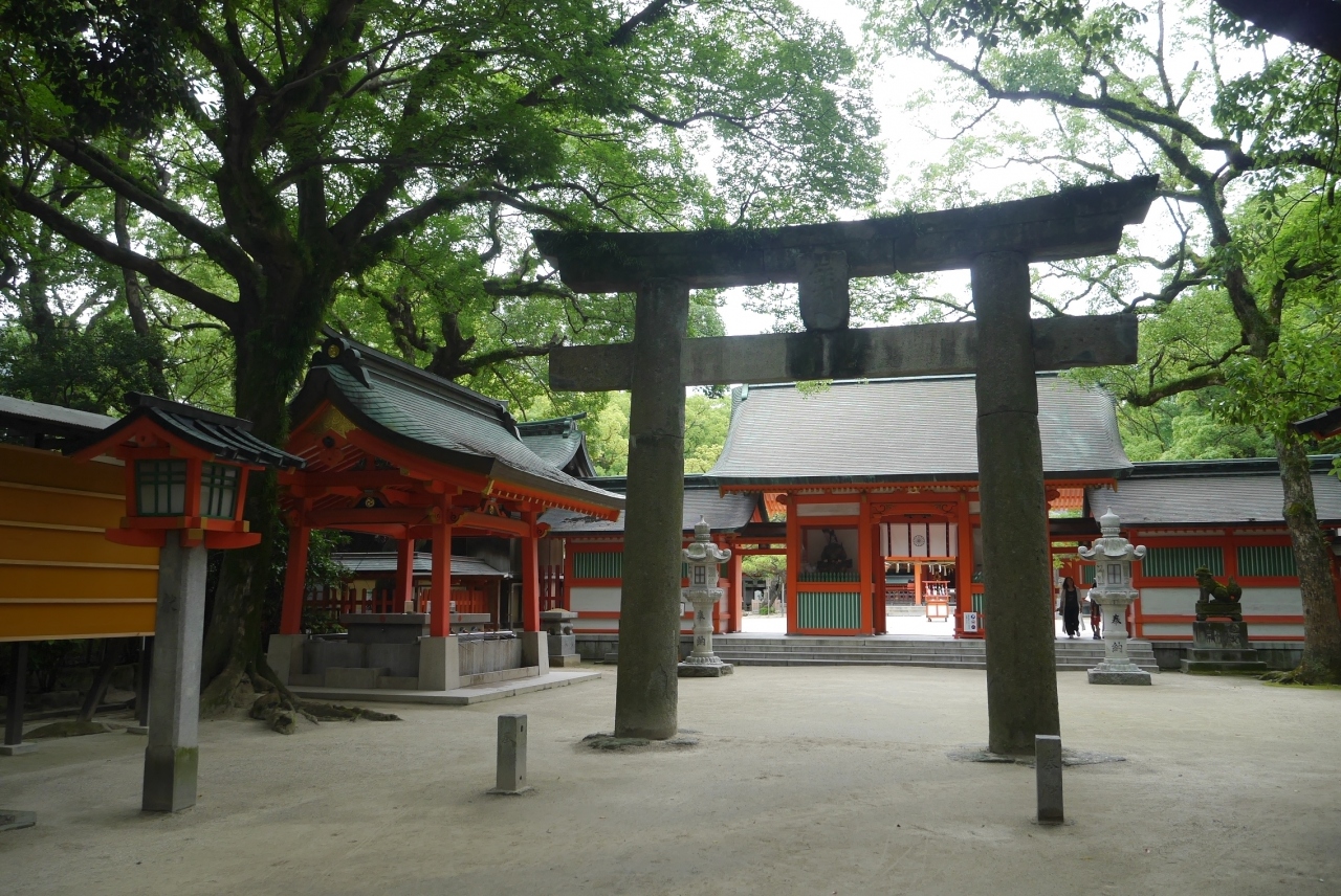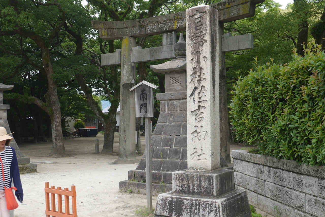 博多駅から住吉通りをゆっくり歩いて10分程で立派な灯篭が置かれた南門に到着します。