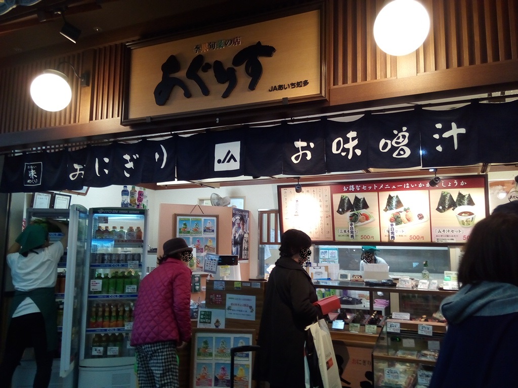 セントレアに到着したのがお昼頃で、軽く食事をしたくセントレアのレストランや売店をいろいろと見ました。その中でピンと来たのがこのあぐりす。おにぎりがたくさんあって食欲をそそられました。テイクアウトのお店ですが、お店の前辺りにテーブルと椅子があったのでそこで頂きました。