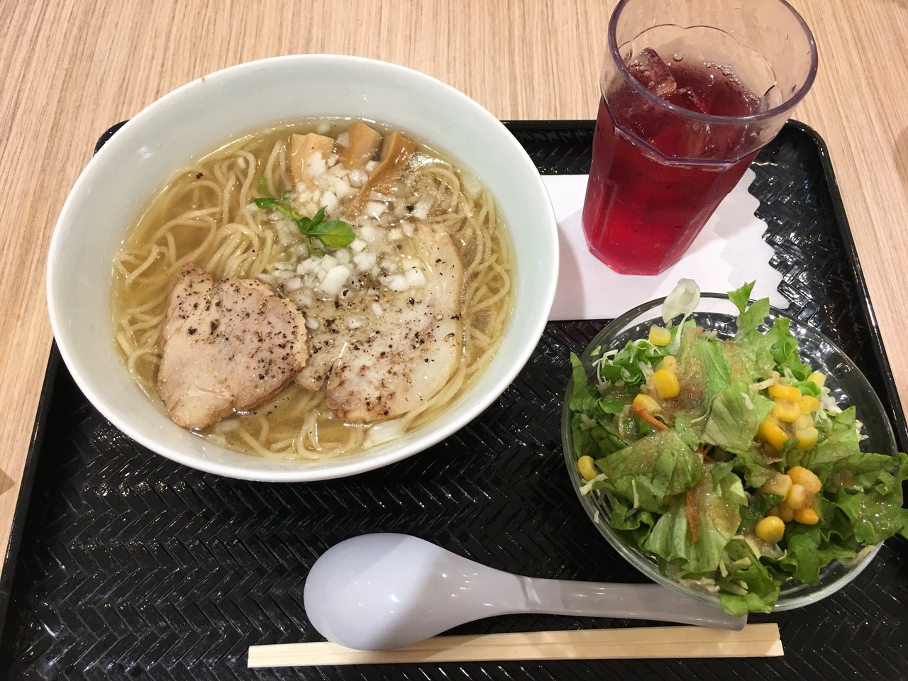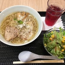 湘南テラスモールのフードコートにあるラーメン屋さんです。週末なので、席がなかなか確保できなくて待ちました。メニューいっぱいあります、牛塩ラーメンとサラダを注文しました。シンプルな中身、最初の一口で牛肉の旨味完全に引き出してうまかったです。最後に時ちょっとしょっぱくて感じました。