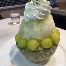 メロンのかき氷は器の代わりに半分にカットしたメロンをくりぬいて使用しており、見た目のインパクトも凄いです。