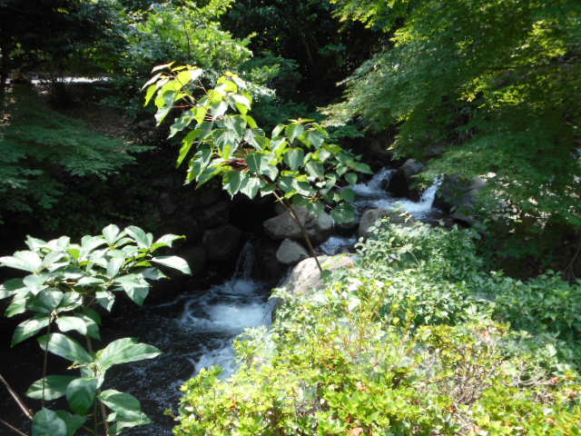 来宮から徒歩で10分ほどの熱海の梅園。その梅園内にきれいに流れるのが、この初川です。6月の上旬には蛍が見られるくらいきれいな川です。穏やかなきれいな川の流れを、梅園のところどころにある橋から見られます。モミジの時期などは、モミジの赤も川の風景に映えてさらにきれいですよ。でも、木々の緑(夏)もなかなかよかったです。