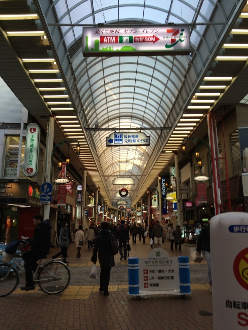 文房具屋さんから古美術品、洋服、呉服となんでも揃っている商店街です。東側はかなり栄えていますが、神戸駅よりの一部はマンションになるなど、少し斜陽化もしています。とはいえ、神戸のお菓子屋さんの本店はこの商店街にズラリ。オリジナルのおみやげなども用意されています。