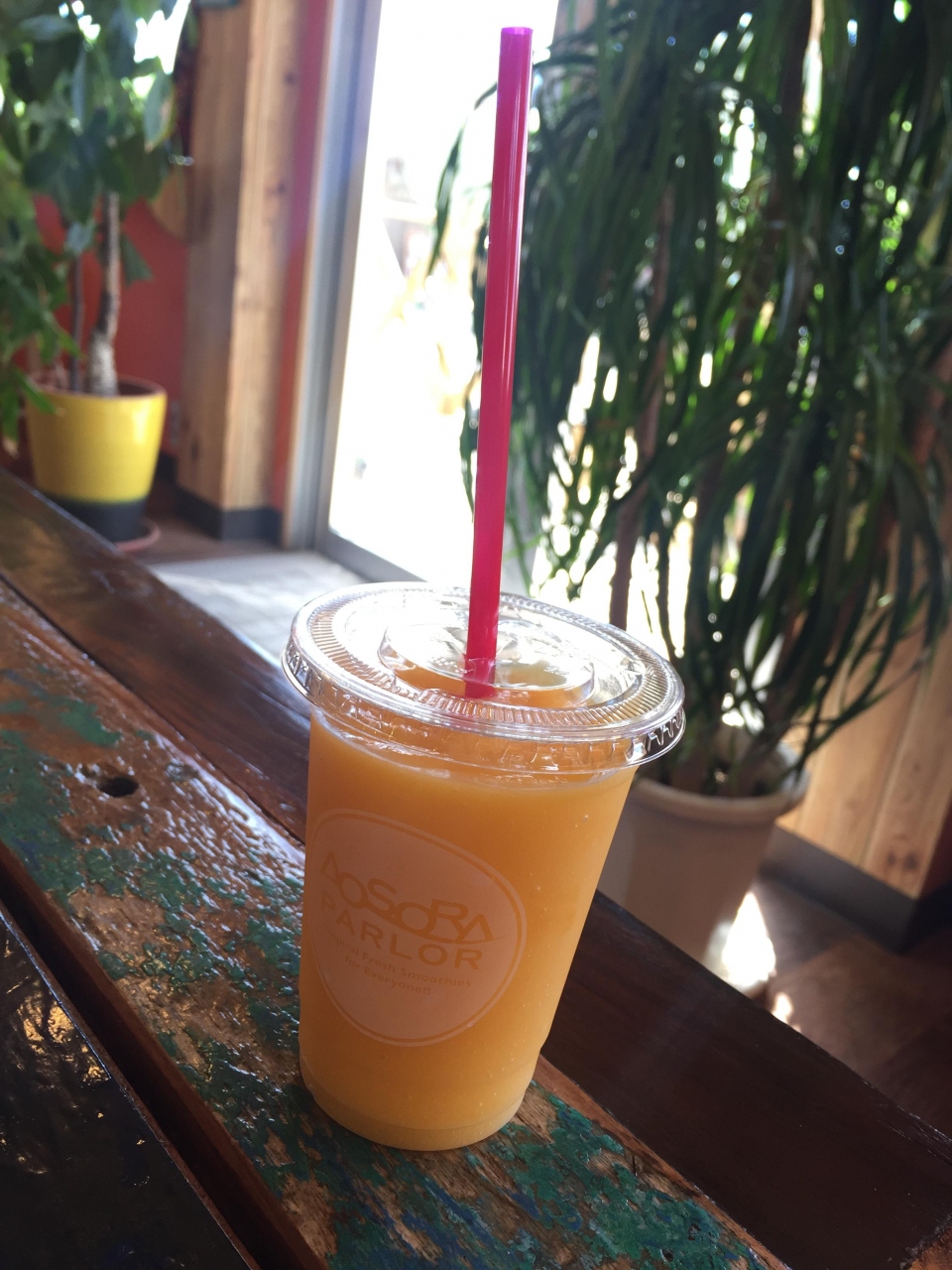 マンゴースムージーはキンキンに冷えててさっぱりとした味わい。