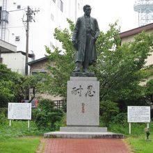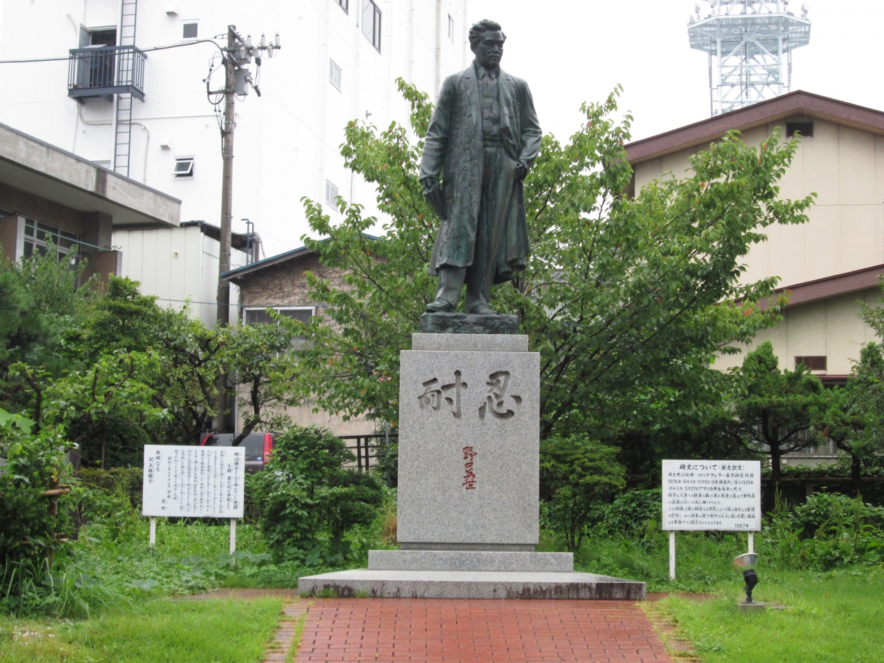 広場の奥にある「野口英世博士」の像は以前は市内中央公民館前に建立されていたそうですが、広場ができるにあたって移築されたようです