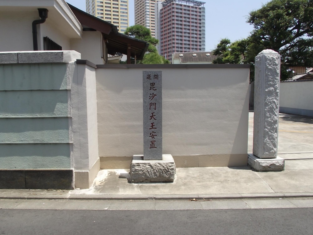明治18年に現在地に移転 とのことだが、全体が新しく見えスッキリした境内で、山門左手前に「開運 毘沙門天王安置」の石柱が建ててあります。
