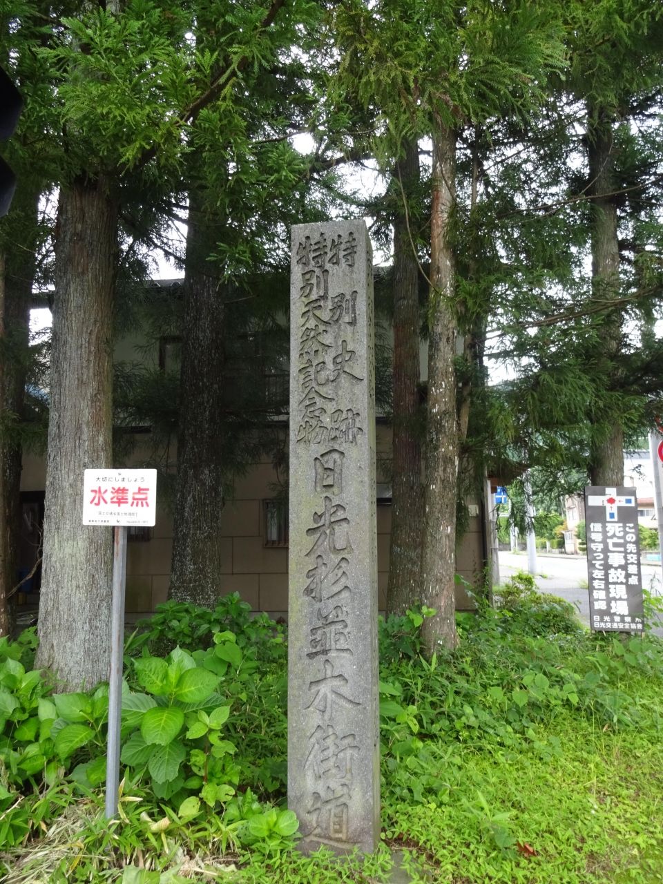 道の入り口に「特別史跡 特別天然記念物 日光杉並木街道」と書かれた大きな石柱が立っていました。