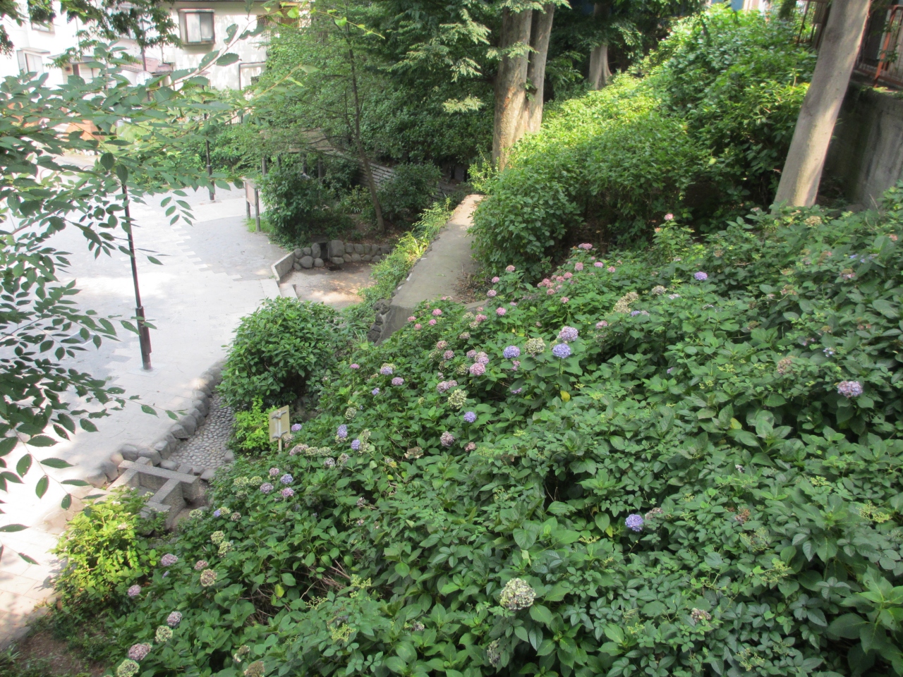 板橋本町駅から徒歩10分、住宅街にある公園です。板橋区宮本町にある温泉施設へ車で行く途中に公園があったので寄ってみました。富士山や大山登拝のみそぎの場として、水質のよい泉がありました。戦後都市開発から埋め立てられましたが、調査からまだ水が湧いていることがわかり湧水池と地下観察井戸を造ったそうです。ところが今は池もなく井戸の水を見ることができませんでした。急な斜面にアジサイが咲き木々が生えている静かな公園です。板橋区内の湧水に興味のある方は寄ってみてはいかがでしょうか。
