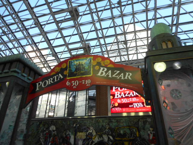 横浜駅の東口に広がる地下街がポルタです。飲食店が多くて便利な場所です。さらに「ポルタバザール(SALE)」開催中でしたので、あちこちのショッピングがお得。あと、「パイレーツオブカリビアン」とのコラボをやっていて、ポスターや展示がありましたよ。
