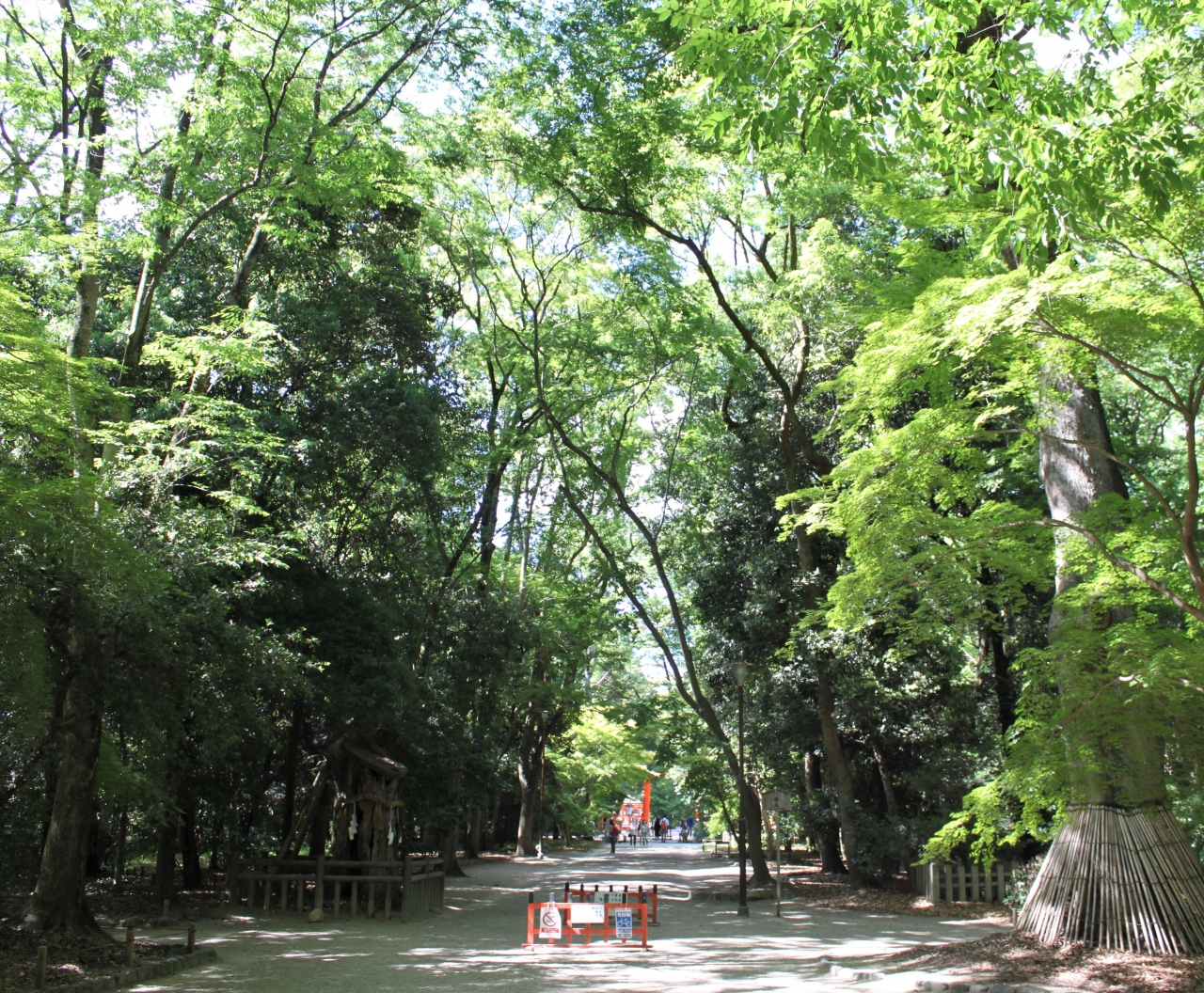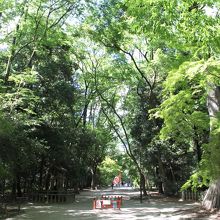 下賀茂神社の表参道は、糺の森といわれる自然豊かな広大な森に囲まれています。