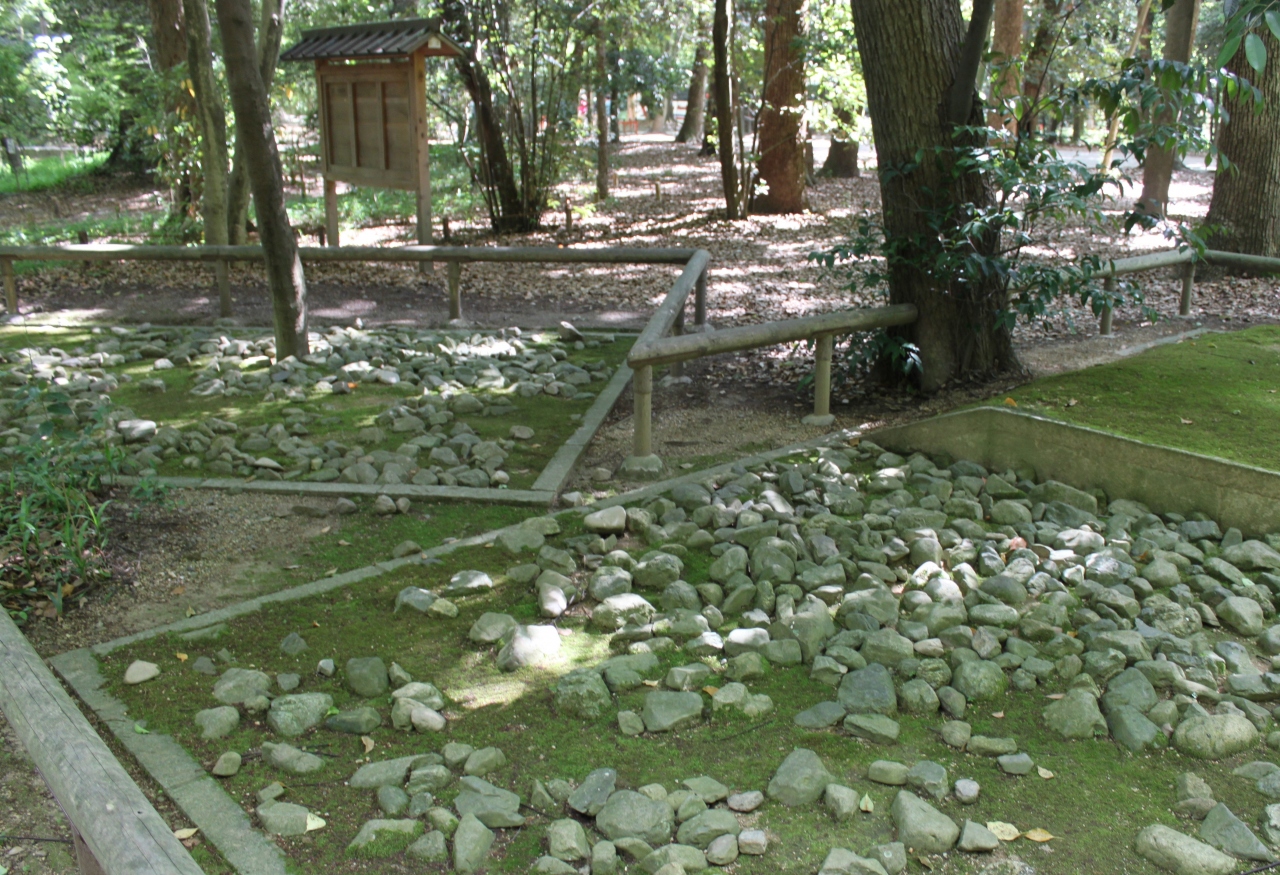遺構の発掘調査がされているようで、祭祀遺構の復元現場などを見ることができました。