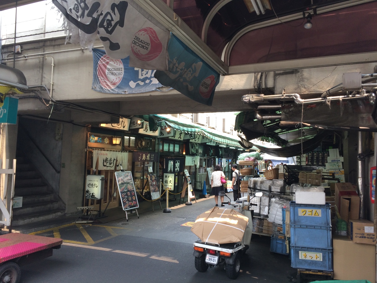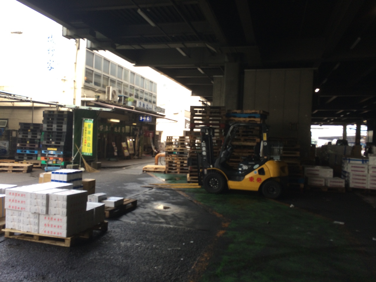水産物部、青果部、魚がし横丁の3つのエリアに分かれ関係者以外立ち入り禁止禁止区域もあります。13時過ぎに行ったので後片付けしている人が多かったです。魚がし横丁の食べ物屋も一部並んでいる店がありましたが比較的空いていました。