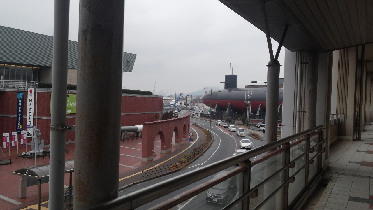 ショッピングモールを通って、長い橋に沿いて、呉港からバス停まで歩いていくのは簡単です。広島へ行くのは便利と値段が低いです。呉港の近くの海の観光の上に、周辺の潜水艦についての灰色と赤い色の建物も面白いです。