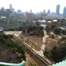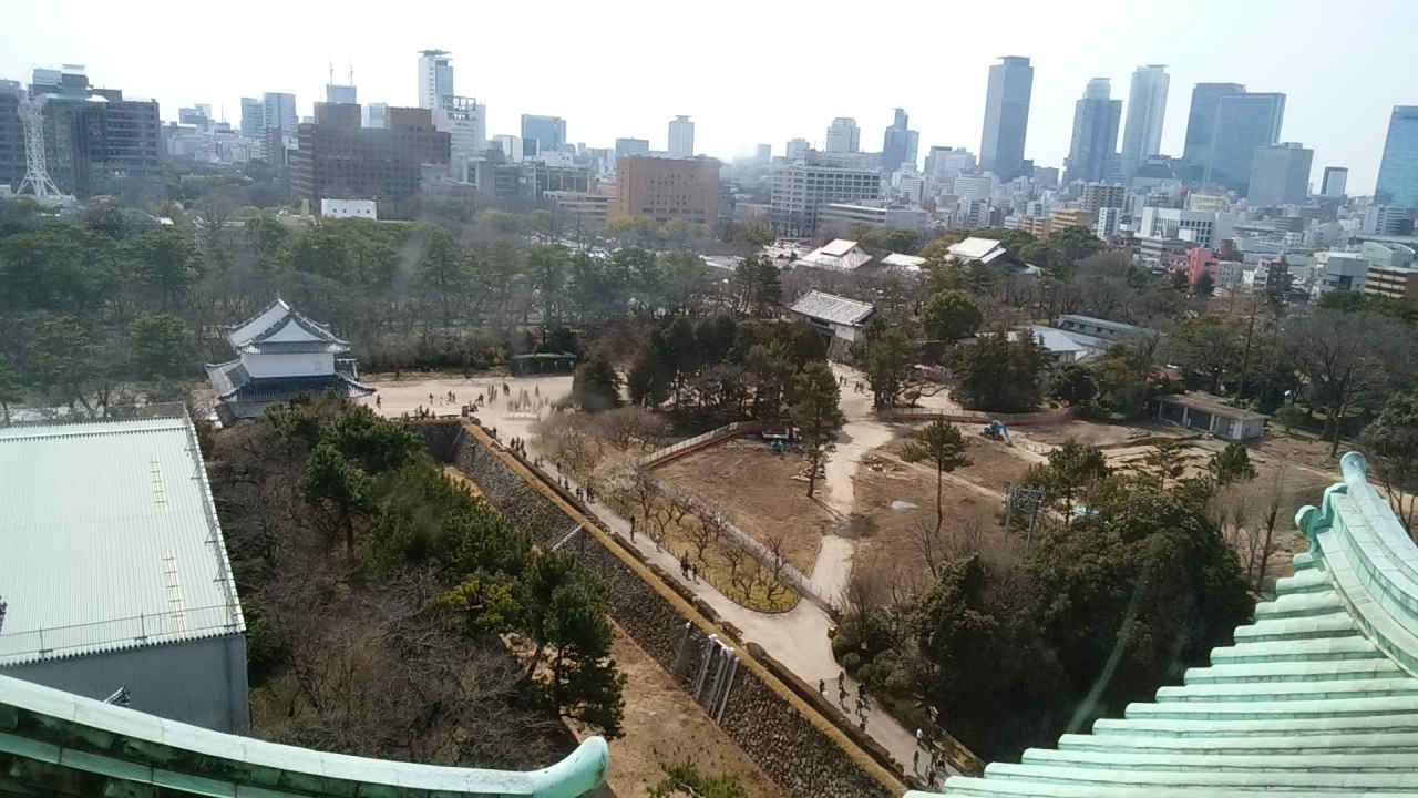 天守閣の最上階は当然のことながら名古屋市内が見下ろせてすばらしい眺望です。天守閣を最上階に上がるまでにも、実物大の金の鯱、千両箱、金貨、大名駕籠、城下町を再現したエリアなど、いろいろ見所が用意されています。