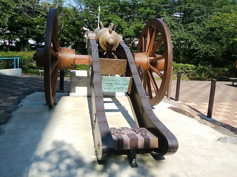 決して大きくない児童公園の中に、周囲の風景とは異質な物体。公園の入口には派手な幟。