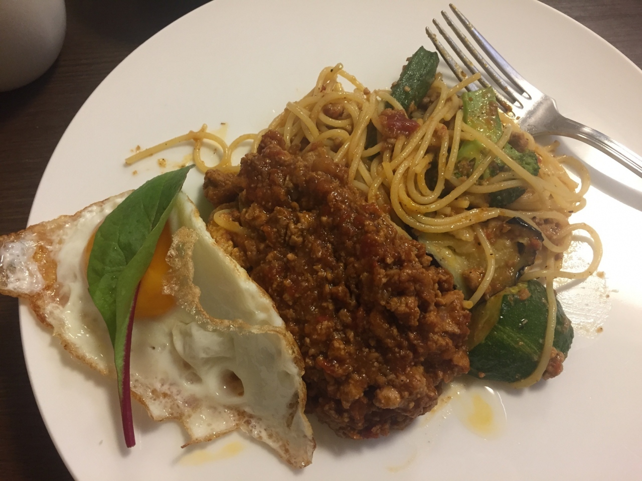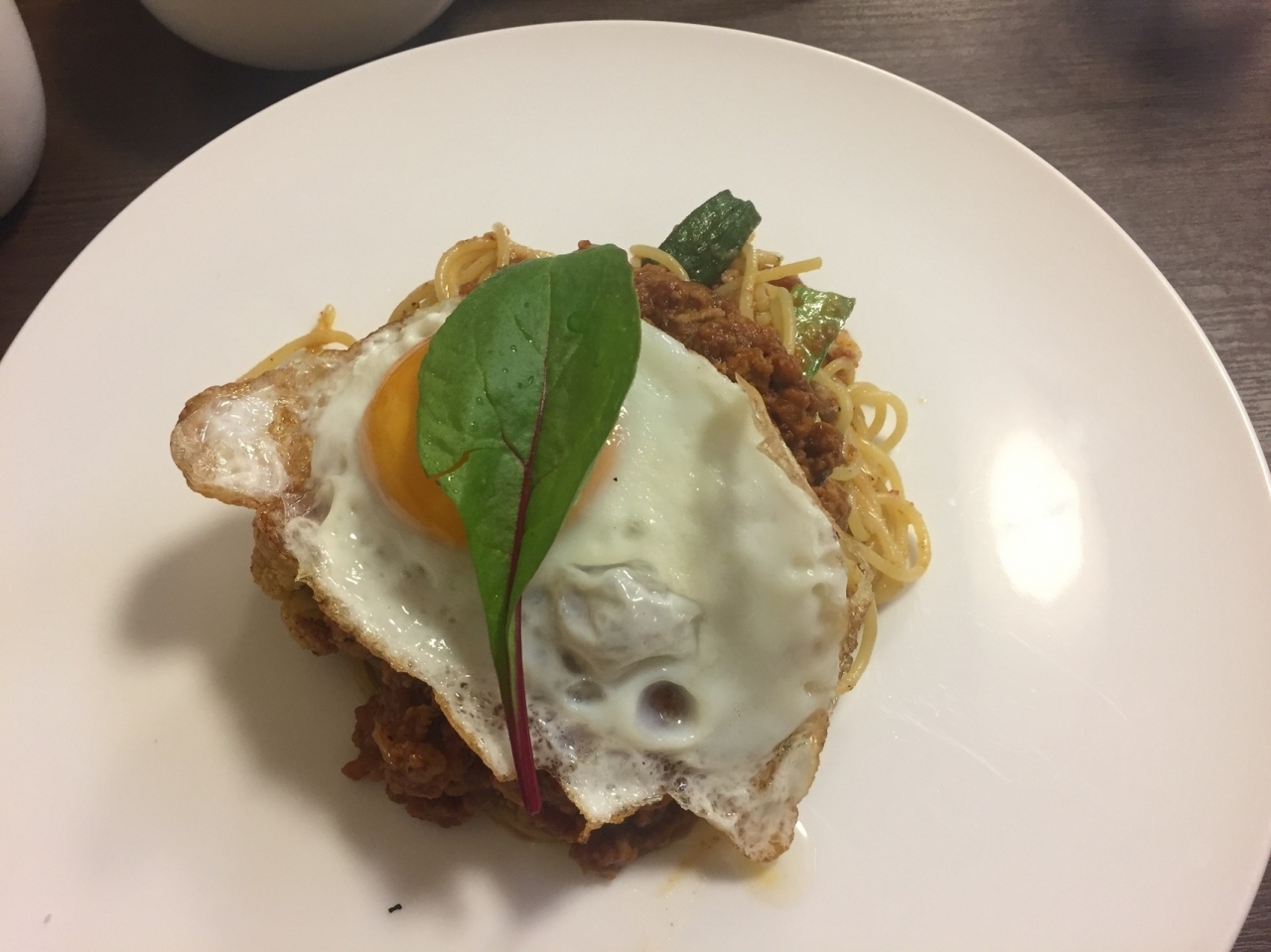 ランチメニューの中のタコとマグロのラグーとゴロゴロ夏野菜のパスタ。