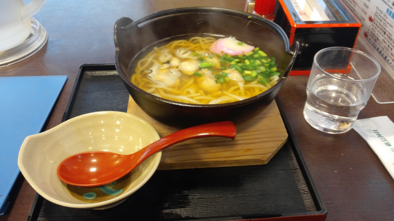 少し冷たい日に地元に有名なかき鍋うどんを選んだ。味は大体いいですが、牡蠣のサイズは小さいです。うどんの量は普通です。うどんと丼だけでなく、焼きたての牡蠣を別に注文できます。厳島神社と三翁神社に近いです。
