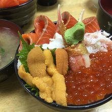 ウニ、カニ、イクラ、サーモンが乗ったANA特製丼2200円をいただきました。ウニ美味しい~カニうま~いイクラの粒大きい~サーモンも脂がのってとろける~