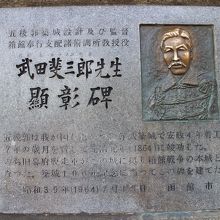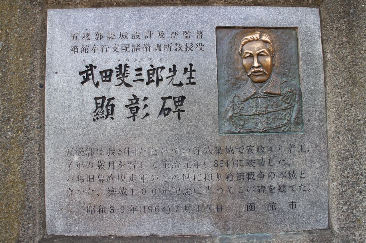 五稜郭公園にある顕彰碑 お顔部分が光っている