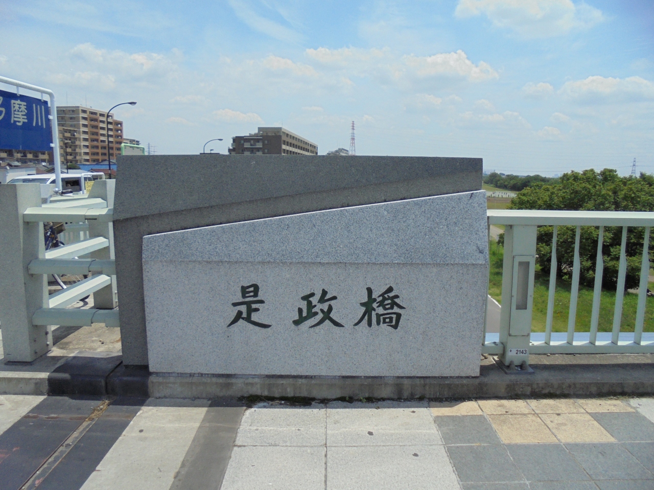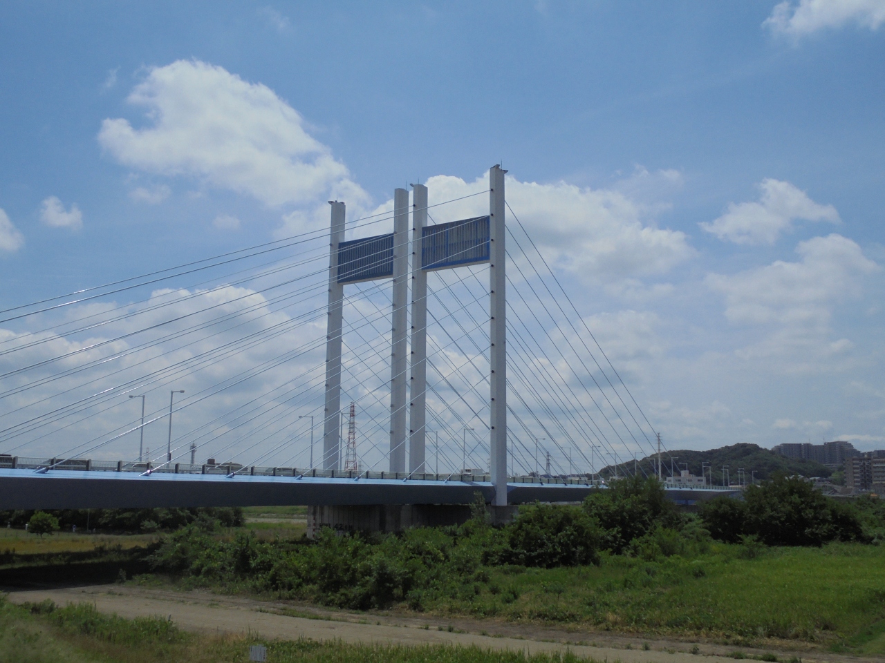 府中市の是政と稲城市の南多摩駅近くに架かる斜張橋で、白色の高い主塔は遠くからでも目立ちます。東京競馬場からの競馬中継で第3コーナーの奥に見えるのが是政橋です。