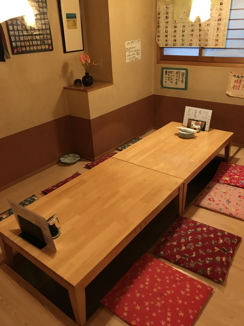 予約時に、2歳半の子供いることと80代の老人がいるので、テーブル席か掘りごたつ式の座敷でお願いしたいと言ったら、快諾してくれ比較的ゆったりとした掘りごたつ式の座敷を用意してくれていた。