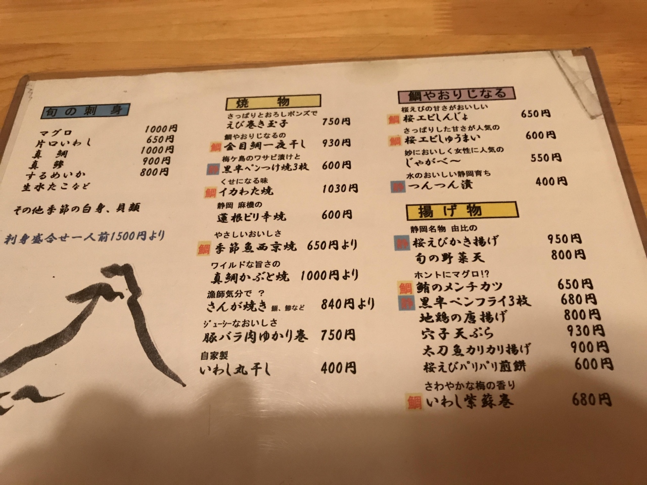 ほかにも、静岡名産の珍味「ながらみ」や店のオリジナルの桜えびシュウマイ(普通のシュウマイの数倍の大きさだった)、いわしのなめろうなど、地物、地魚がたくさんあり、どれも美味しく頂いた。