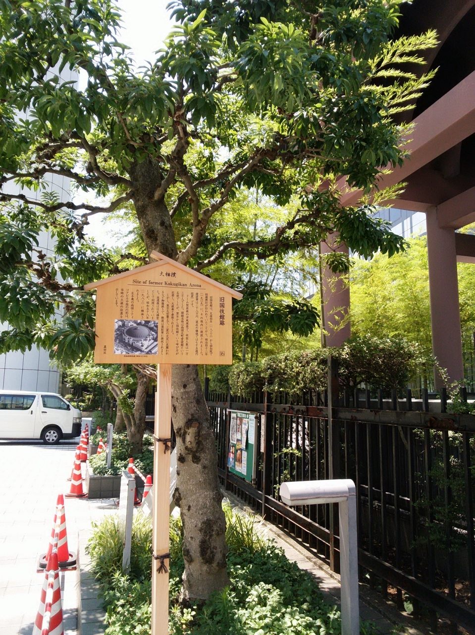 JR両国駅から徒歩5分程、京葉道路を渡ったところにはかつて国技館があったようです。案内板によると、1833年から相撲興行が回向院の境内で行われていたことから、この地に国技館が建設されたようです。現在は、複合商業施設(両国シティコアビル)がありますが、中庭の円形が当時の土俵のあった位置を示しているようです。これ以外には当時の面影はないので積極的に観光する場所ではありませんが、すぐ脇には回向院があるので、回向院に行った際に立ち寄ってみるのも良いです。