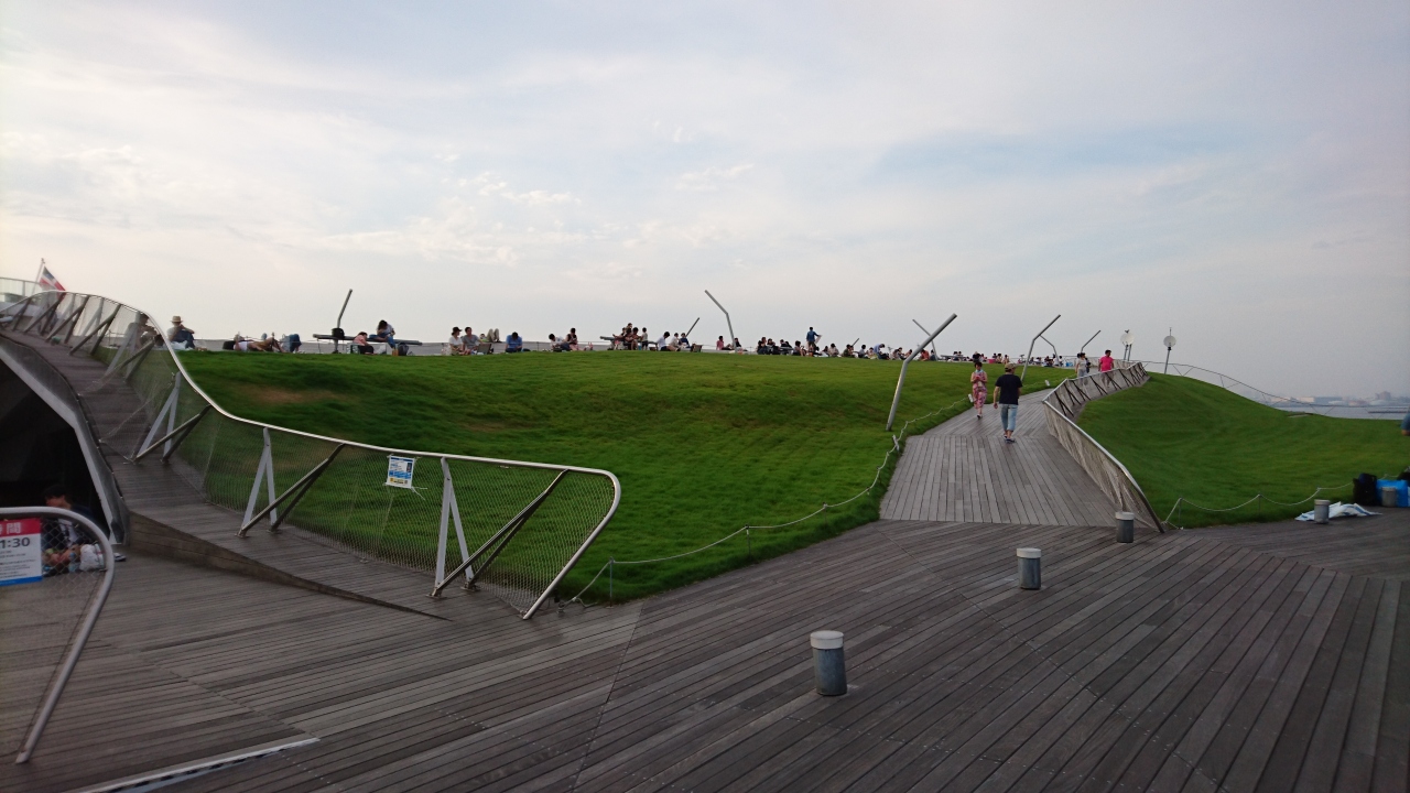 日帰りで横浜に行ったときに横浜港大さん橋国際客船ターミナルに行きました。大さん橋からはみなとみらいだけでなく横浜ベイブリッジも見ることができました。夕方でも夜でも美しいみなとみらいと横浜ベイブリッジの風景を見ることができました。大さん橋まで来た甲斐がありました。