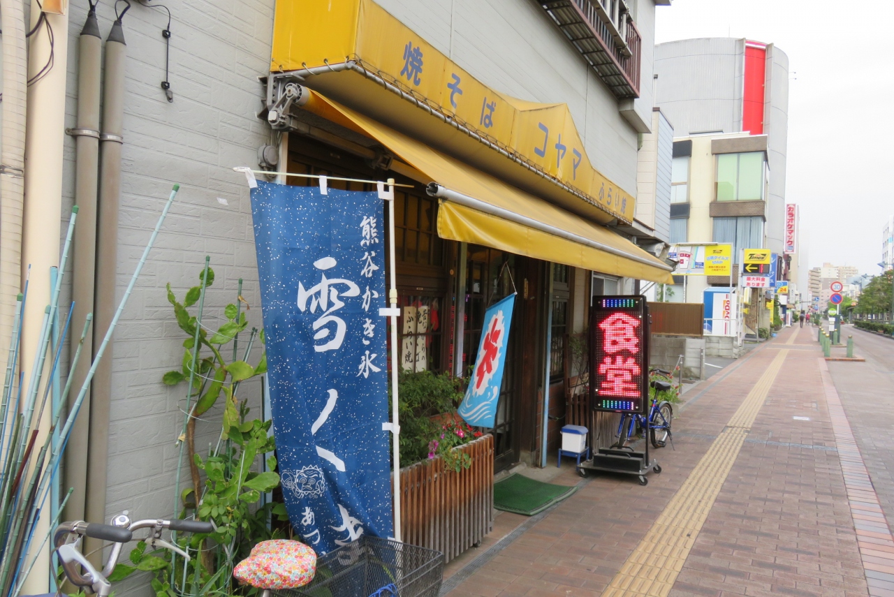 いかにも安そうな食堂で、焼きそばやフライ(お隣の行田名物のお好み焼きみたいなもの)が美味しそうでしたが、暑さしのぎに雪くま「ブルーベリーミルク氷」450円を頂きました。雪くまとは熊谷市が認めているかき氷。口どけが良く、ブルーベリーのシロップは甘すぎなくて美味しかった。値段もお手頃で満足です。
