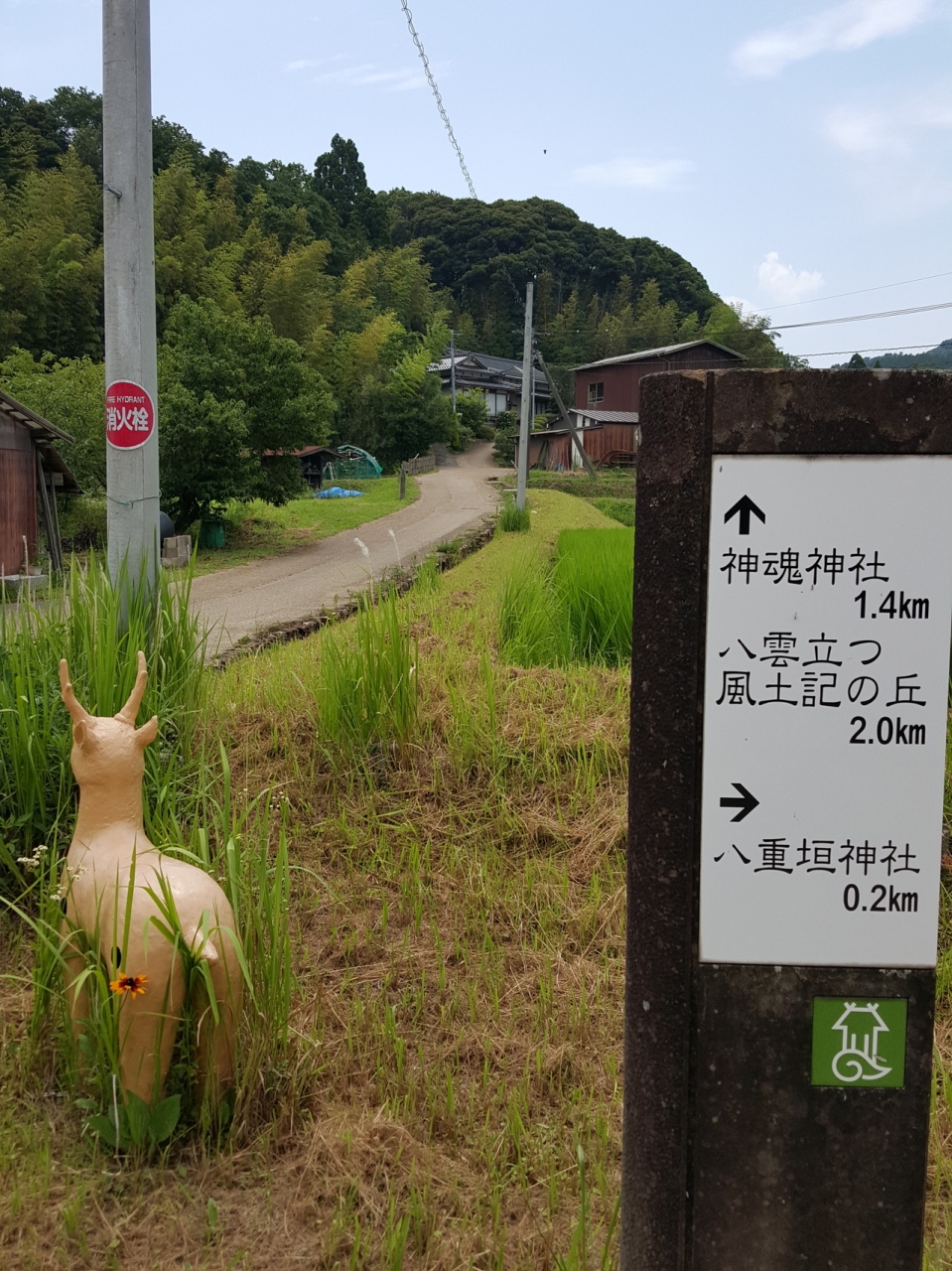この道路は松江市が整備した、出雲風土記に登場する八重垣神社から田園風景のなか、古墳・横穴群を巡り、出雲国造館跡、国宝の神魂(かもす)神社を結ぶ散策道だそうです。