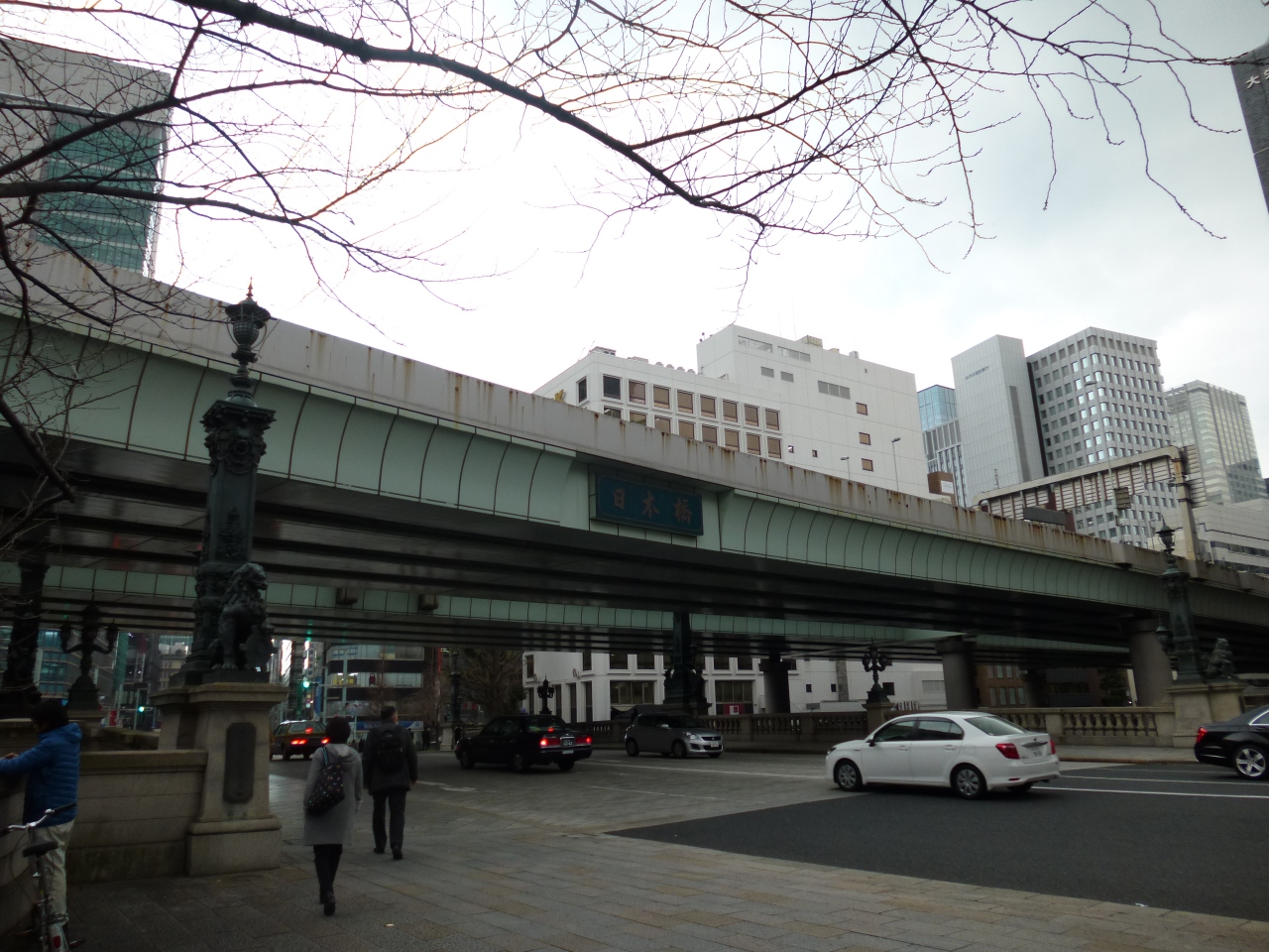 何度通っても「日本橋」の姿はなかなか見事だと感じます。いつも観光客の姿を多数見かけます。惜しむらくはすぐ上を通る首都高速道路です。ニュースによると首都高速道路を地下に埋める計画があるという事です。東京の歴史を語る橋であることは間違いないので、ぜひ進めてもらいたいと思います。首都高速道路がなければ、橋の向うに三越をはじめとする風格あるビル群が見え、東京を代表する光景のひとつになると思います。