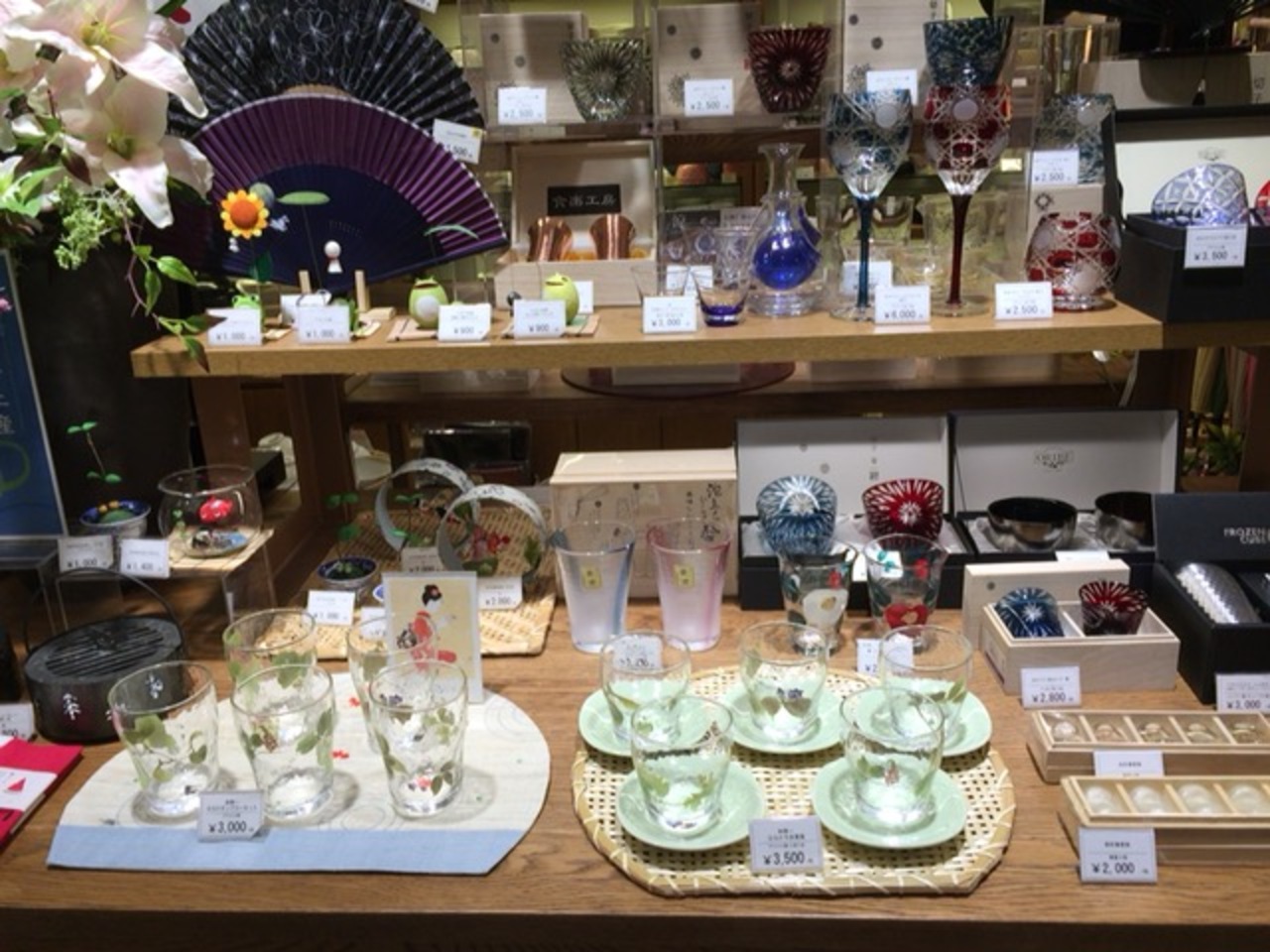五反田レミィにある陶磁器、漆器、お箸、ガラス食器などの和食器などを、取り扱っている お店 時々お伺いします。今回は夏らしいガラスの食器を探しに。予想通りたくさんの涼しげなガラス食器が有りました。高額ではなく使いやすくオシャレな商品が多くて頼りになるお店です。