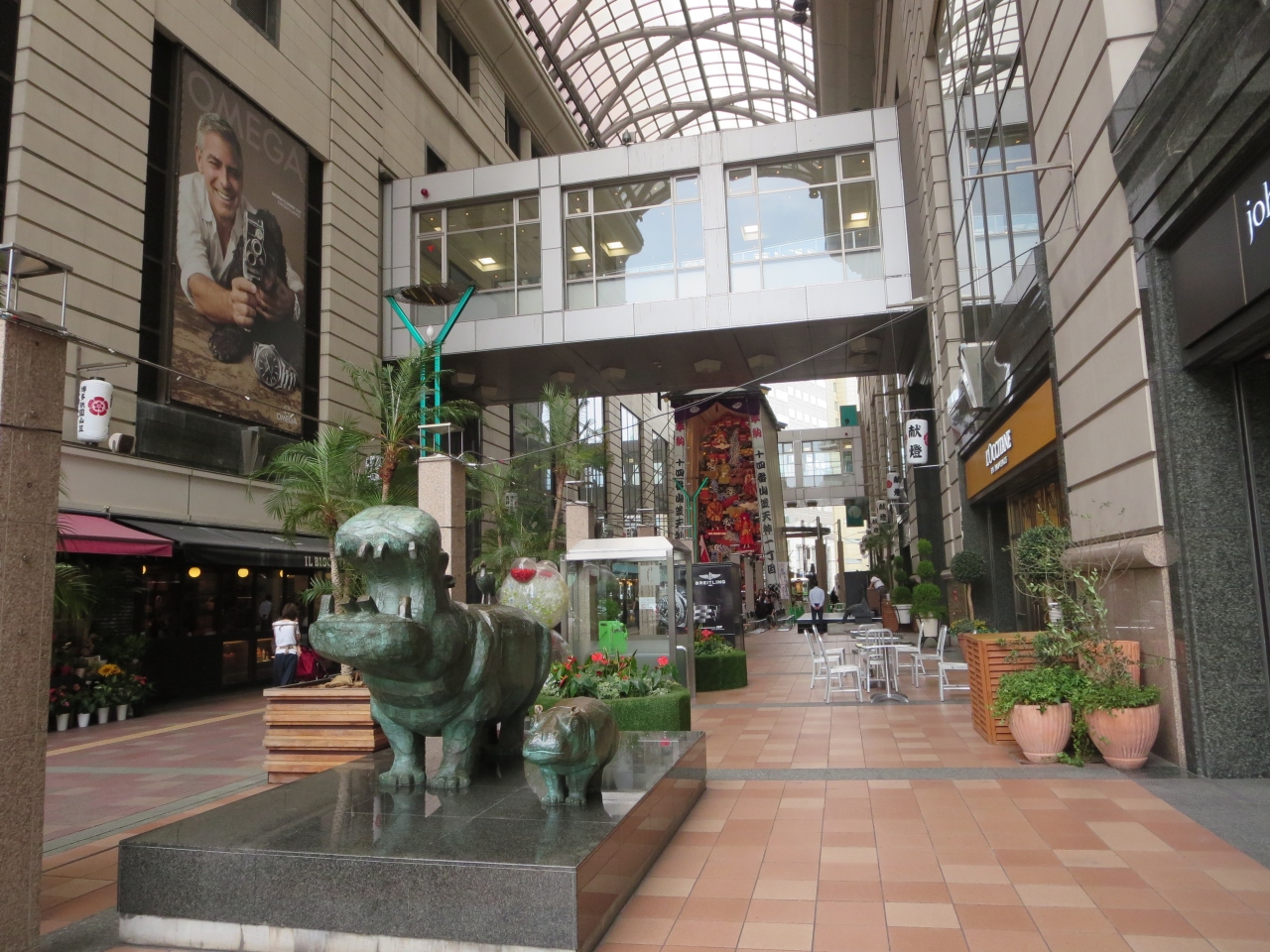 福岡博多天神大丸の東館エルガーラに並ぶ広場でアーケードになっているので雨の心配なく散策を楽しめます。現代アートが幾つか置かれ、華やかな感じになっています。