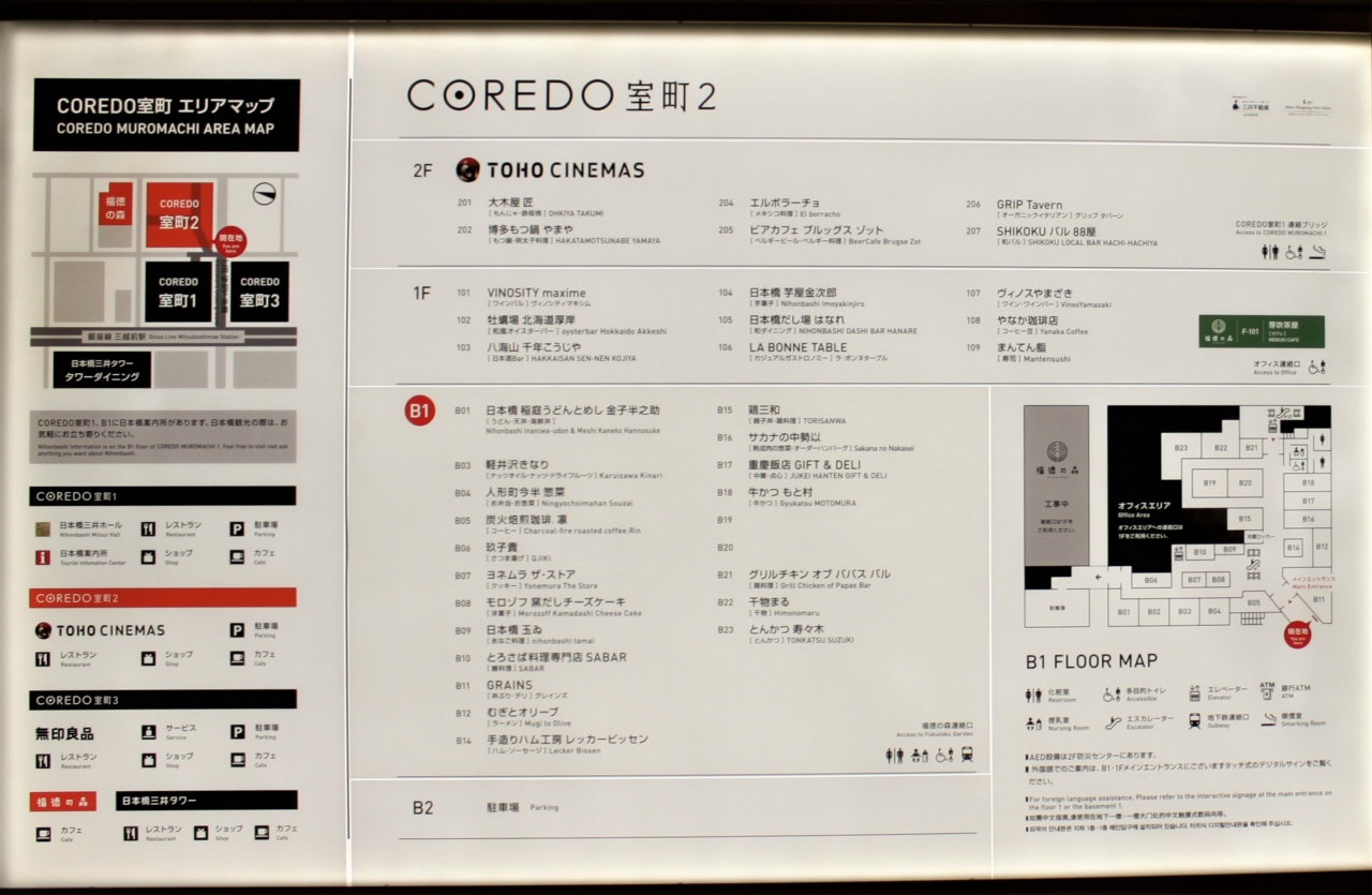 コレド室町1~3に分かれ、それぞれ魅力的なお店が軒を連ねます。