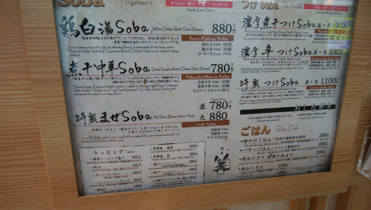 このエチカの池袋の場所はラーメン屋さんができては消え、できては消えしていきました。銀座 篝の前にも大勝軒のつけ麺が食べれたり、銀座 篝ができた場所の先のエチカの場所にもありました。そのぐらい移り変わりが激しい場所です。銀座 篝のラーメンは、濃厚なスープ。色が白濁しているのがわかり、濃厚なポタージュみたいです。銀座にある銀座 篝は混雑でしたが、こちらのお店はできてまだそれほど過ぎていないせいか、まだそんなに混んでいなかったです。