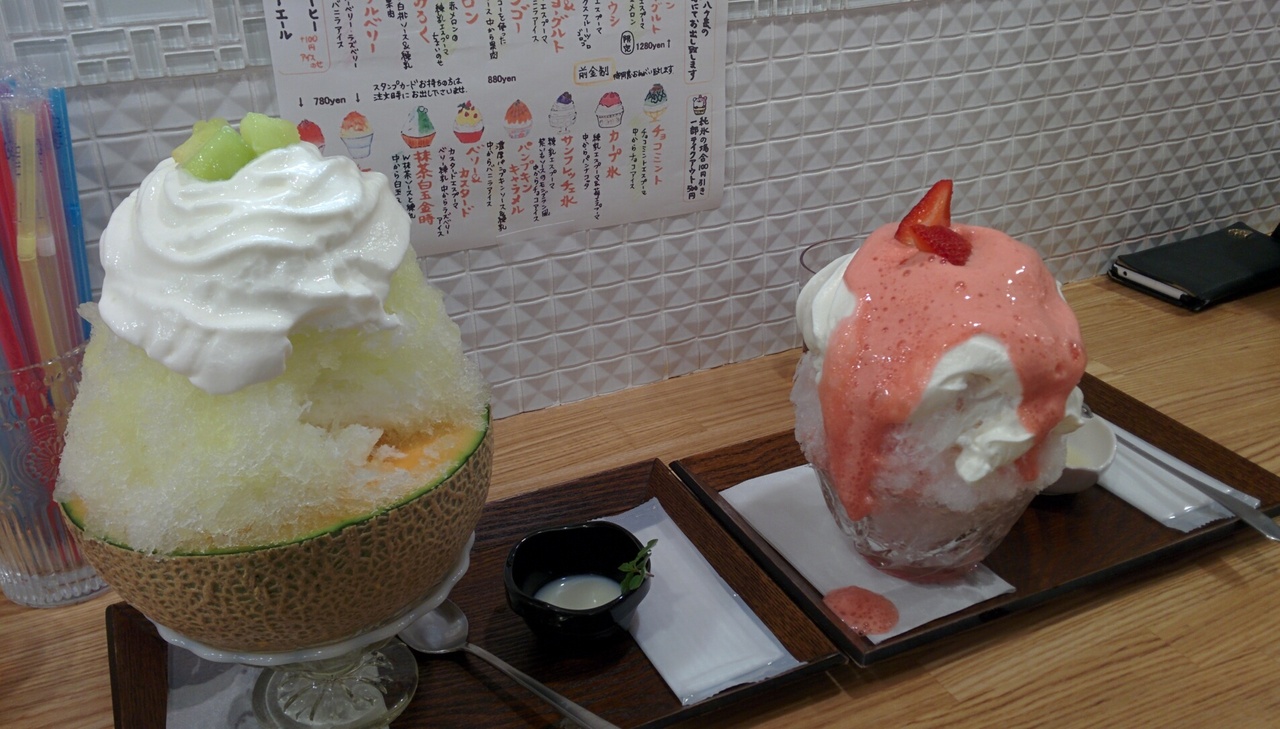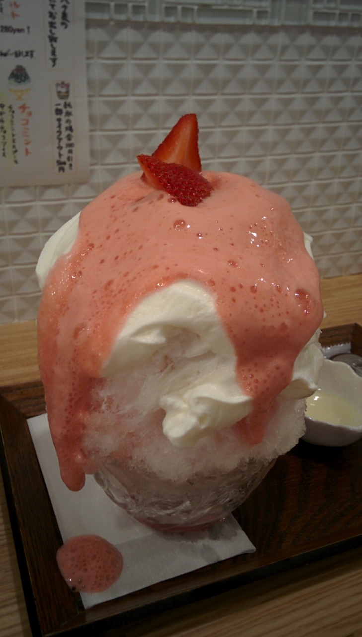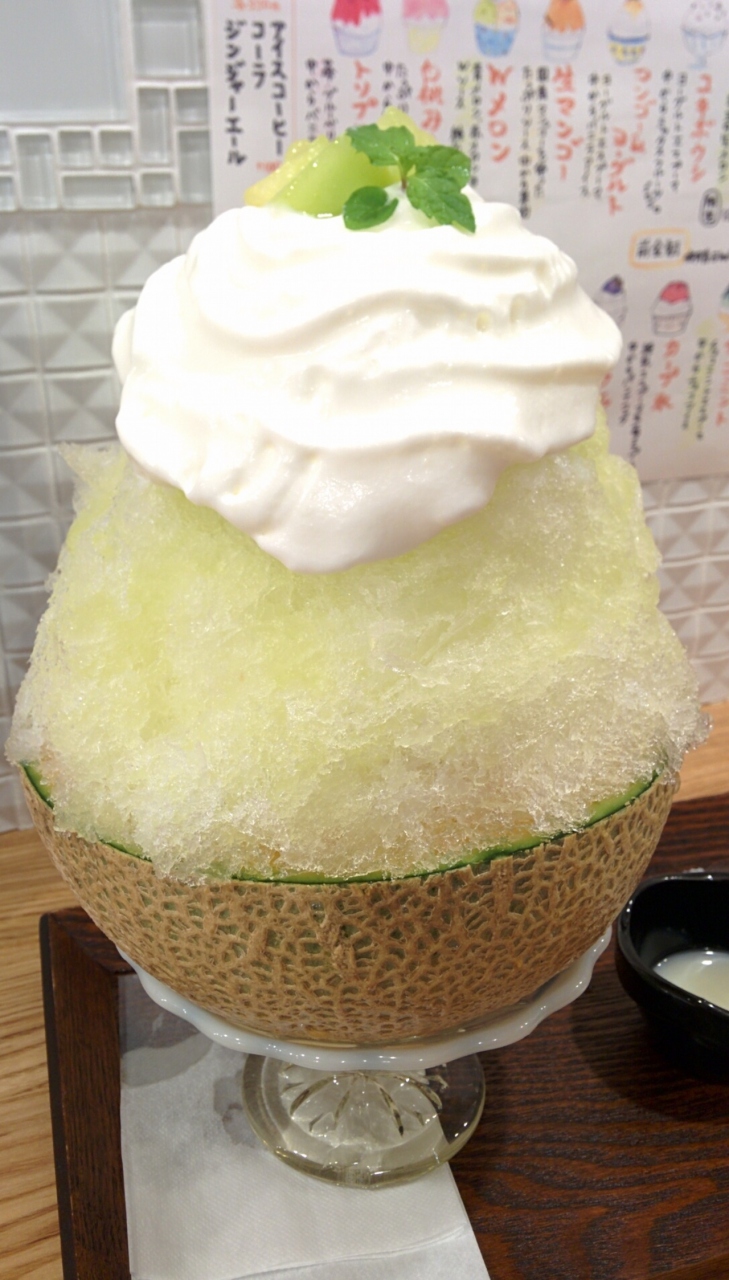 人気のかき氷のお店。平日の1時過ぎだったため並ばず入ることができました。メニューはどれも美味しそうで迷います。限定に引かれたので生メロンにしたのですが、かなり大きく大変でしたが、かき氷はあっさり、メロンは甘くていただきました。ここは中学生以上は一人1個注文しないといけません。ひとつずつ作られるため注文してからも時間がかかるので時間のない方はご注意を!