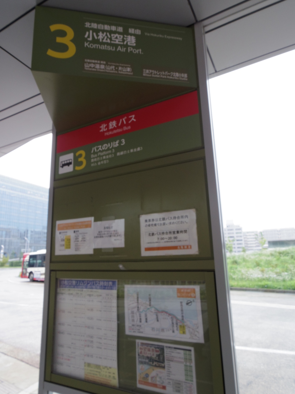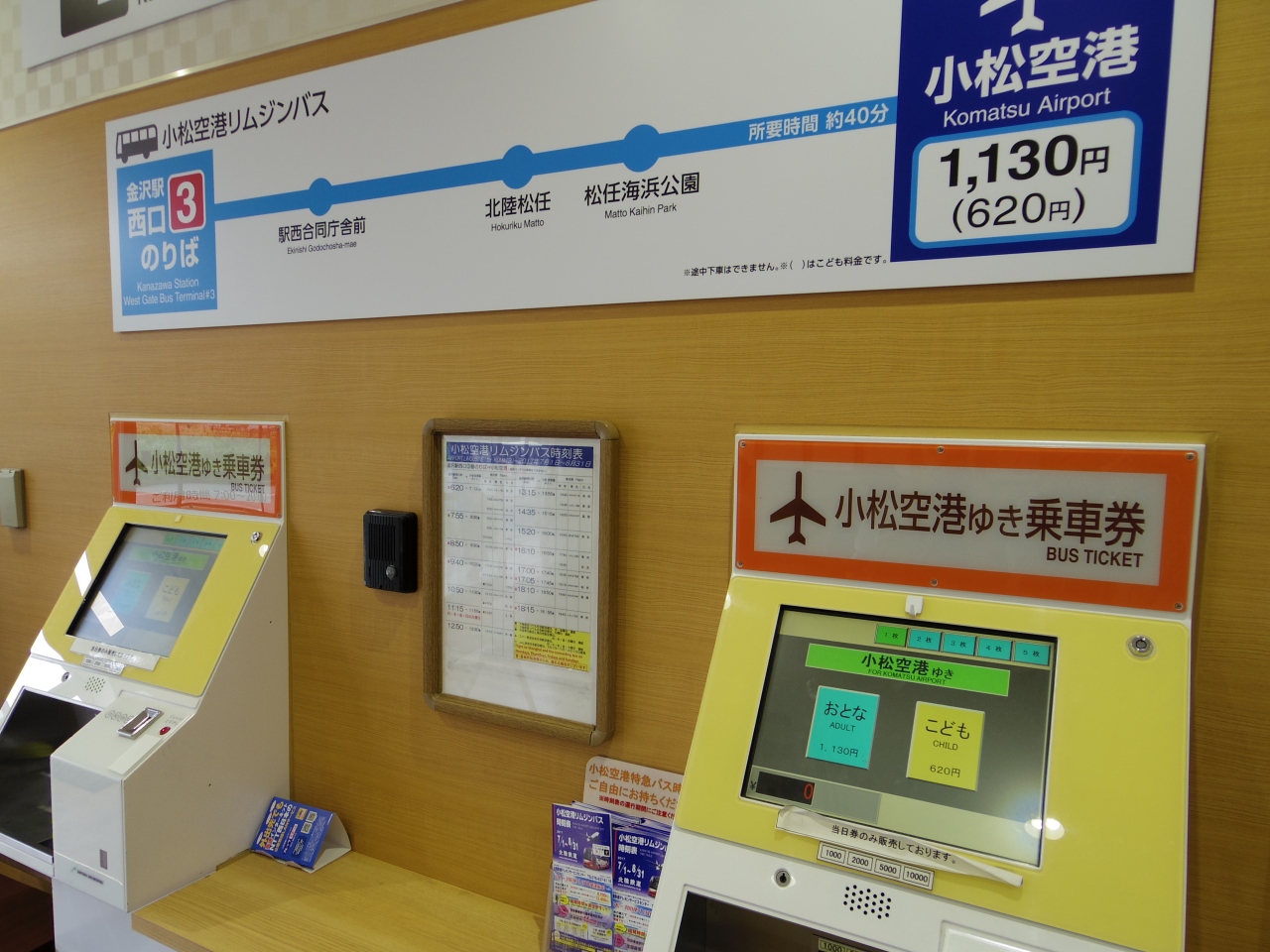 40分くらいで1130円、飛行機の時間に合わせて走っているため、出発する時刻はいろいろ、3番乗場の近くには、切符の自動販売機のある北鉄バスの待合室もありました。